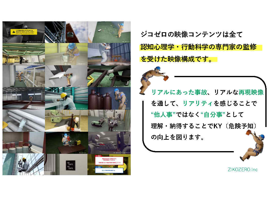 労働安全衛生教育を、実写の放映で行う技術から、CG動画配信により行える技術に変えた。
