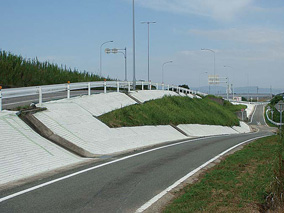 ・のり面の一部が沈下した場合でも製品が追従するので早期発見しやすく、メンテナンスも容易に行える