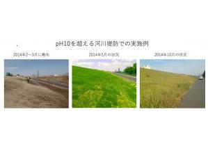 アルカリ法面を緑化するための土壌の置換を、液状中和剤を散布する方法に変えた。