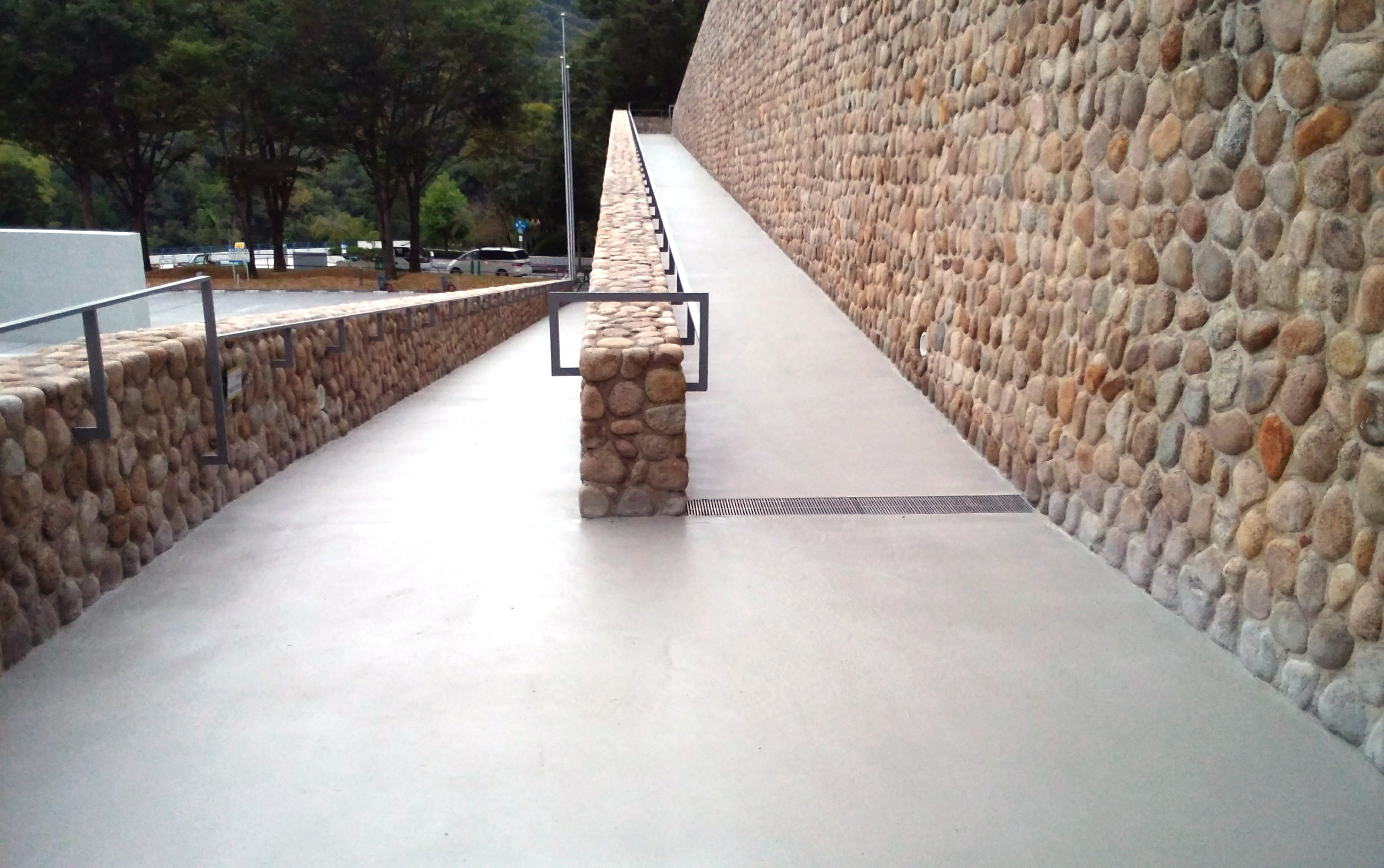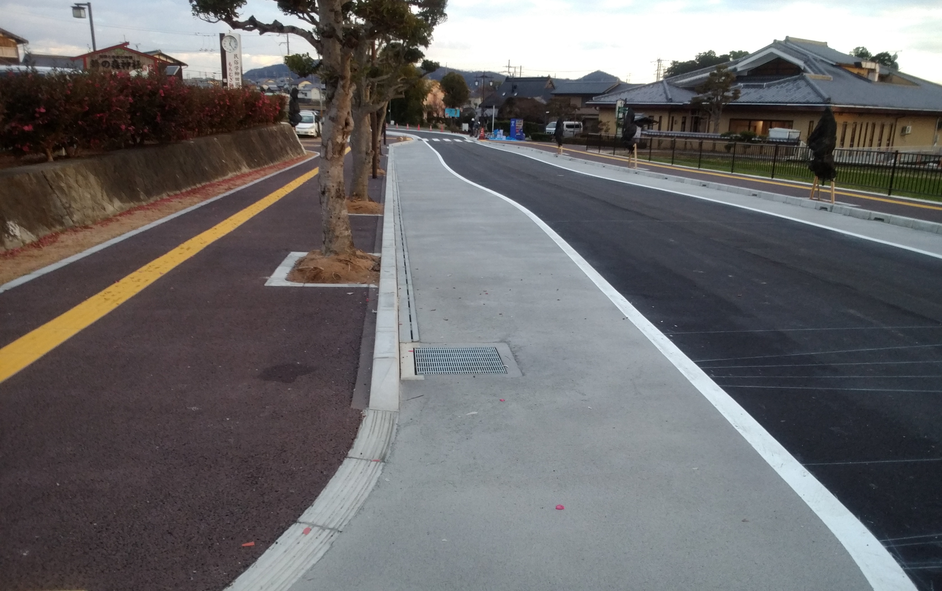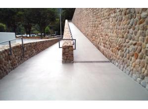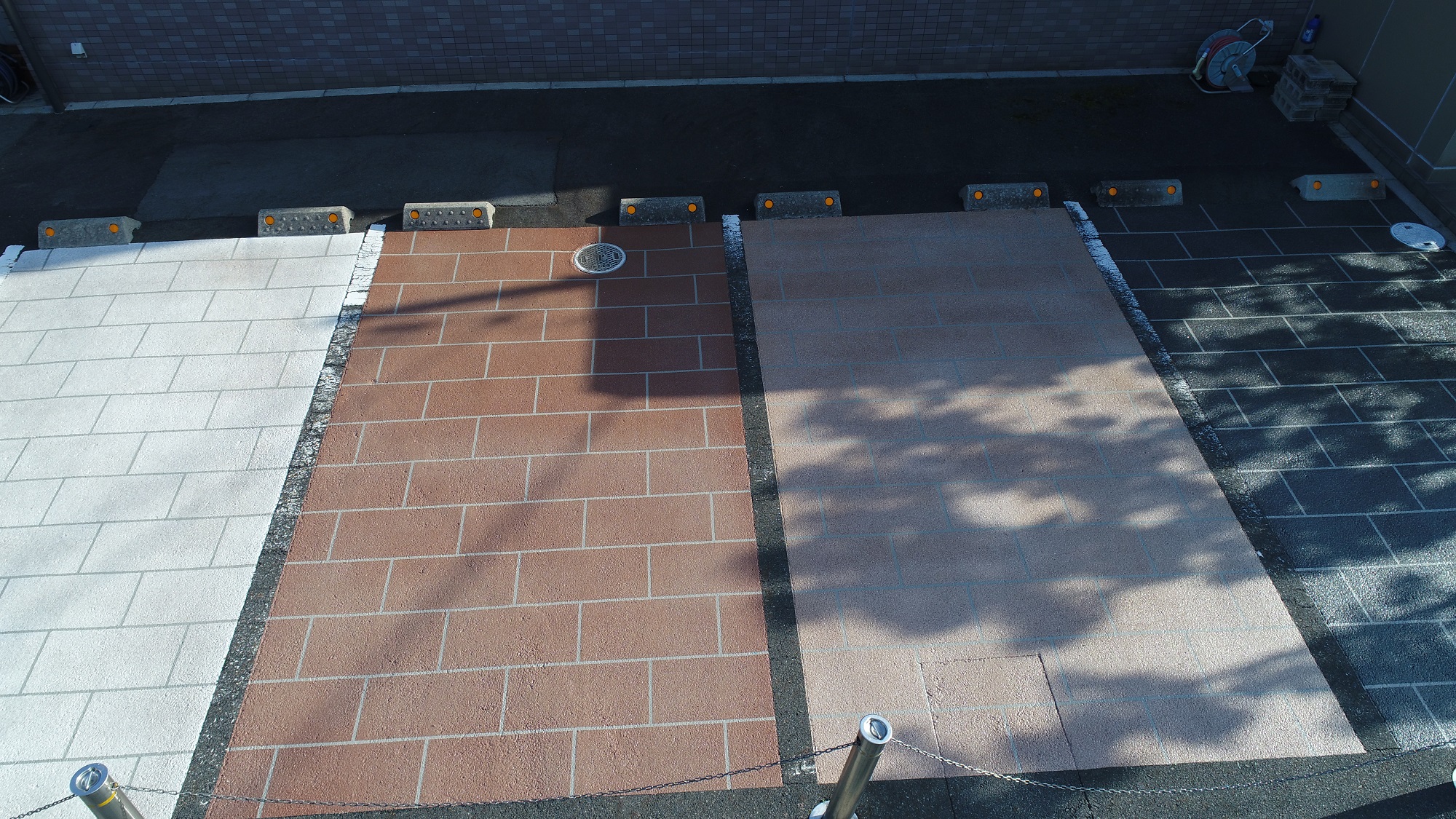 樹脂モルタルと瓦を主原料とする薄層舗装とした