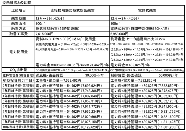 (5)従来技術は舗装内に発熱線を埋設していたが、新技術では発熱線を必要としない。