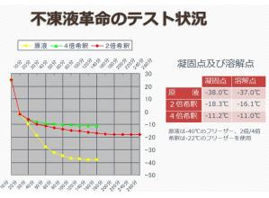 適用環境は、2倍~4倍希釈で散布を行う場合は、-10℃以上の地域。この温度以下では、融解率が低下する。