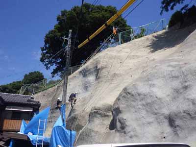 ・バスク(特殊樹脂モルタル)を用いて、既設モルタル面等の老朽化、劣化に対し、全面を被覆し、保護・延命を図る。