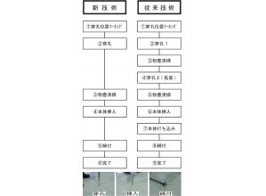 ・従来2回の穿孔「下穴・拡底」を必要としているところを「下穴」のみの1回にした。