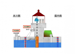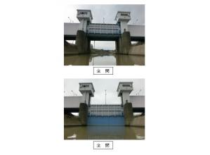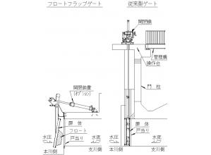 従来の昇降式ゲート設備では、管理者は適宜、河川水位の上昇に対してゲート開操作による排水を実行しなければならない。申請技術は管理者による開閉操作が不要となる。