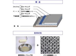 ・補強用繊維シートをガラスクロスから、樹脂が含浸することにより透明となる特殊有機系繊維シートに変えた。