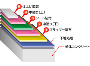 ・含浸材(接着剤)・繊維シート・仕上げ材を変えたことにより、施工後下地の劣化状況を目視により経過観察することが可能となるため、施工後の点検及び維持管理が容易となる。