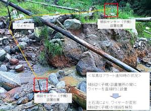 ・ワイヤーセンサーや計測機器に比べて安価となるため、広域に設置することが可能となる。