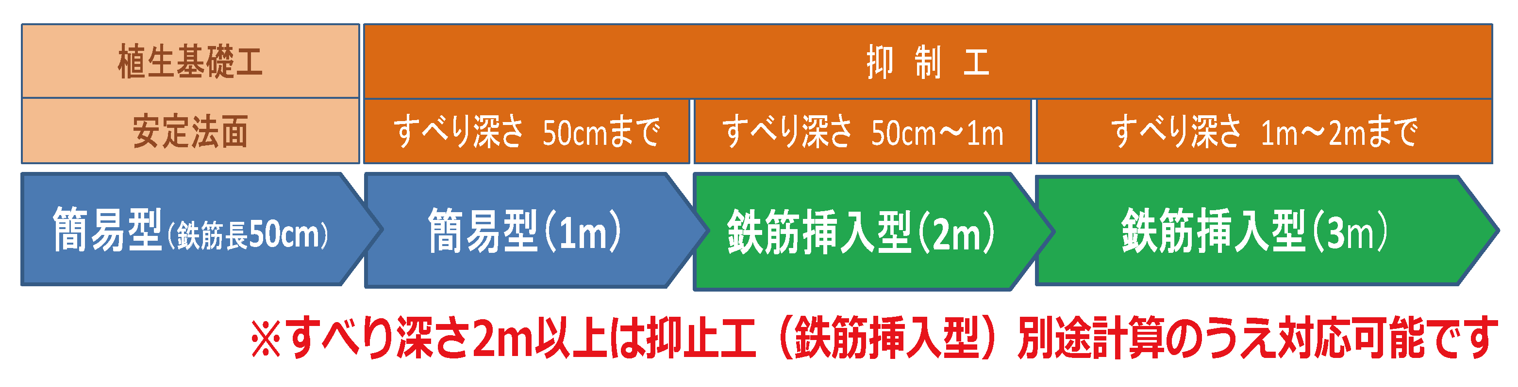 ・鉄筋挿入工の適用外となる崩壊が生じる場合(地すべり、深層崩壊など)