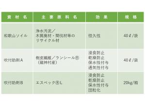 ・浄水汚泥・木質廃材を利用しており、ミネラル分に富み、保肥力がある。植生に必要な粘性土と養分・堆肥が豊富な土壌を形成する。
