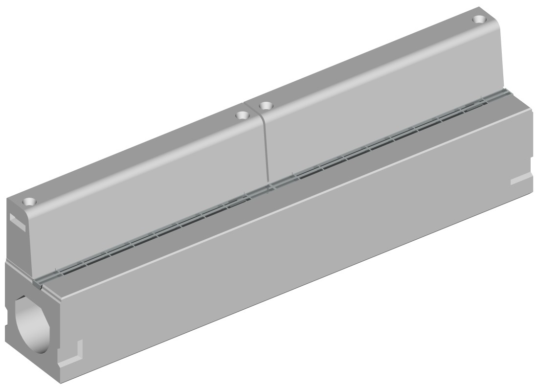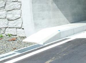 ② 製品上部中央の広いグレーチング開口部により、排水性に優れる。また、同開口部から専用器具による清掃が容易にできる。