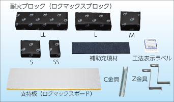 ・各サイズの耐火ブロック、床施工用の金具(Z金具・C金具)、支持板(ロクマックスボード)など別売部品が充実。施工現場の状況に合わせた部品を選定することが可能