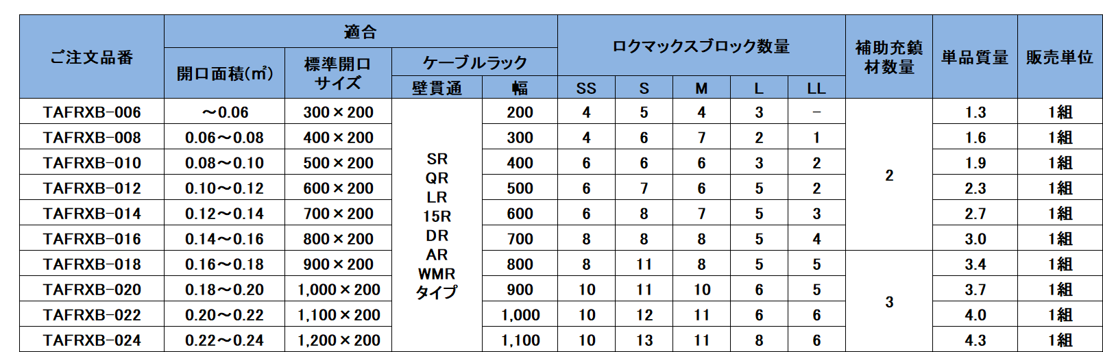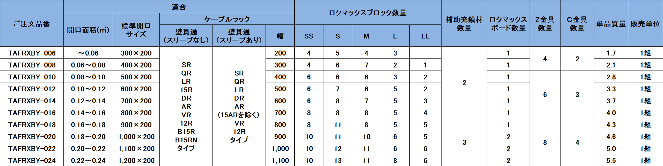 ・床、壁それぞれ開口サイズに合わせた専用のキット品をラインナップし、選定が簡単