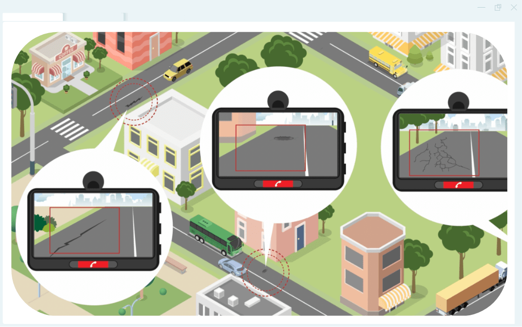 三井住友海上と協業で運営しているサービス。大手小売や物流事業者等の車両に設置されている全国のドライブレコーダーで収集した路面データを活用して、道路損傷検知を行うことが可能である。これにより自治体で巡回しなくとも道路損傷の検出を行うことができる。