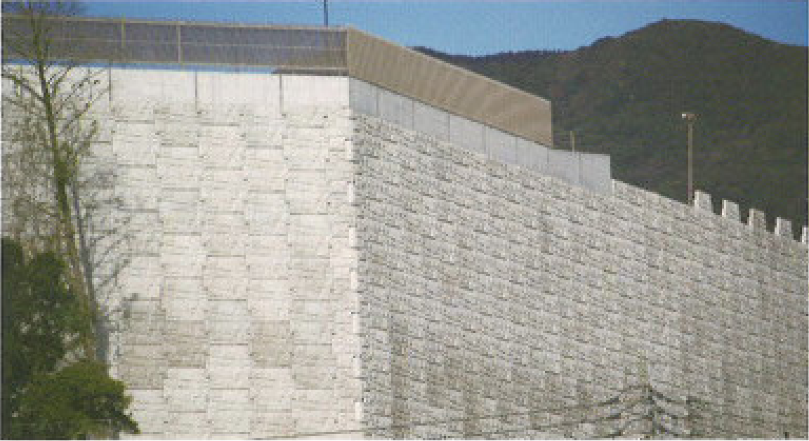 壁面材に既製の大型積ブロックを活用した外部拘束型補強土壁