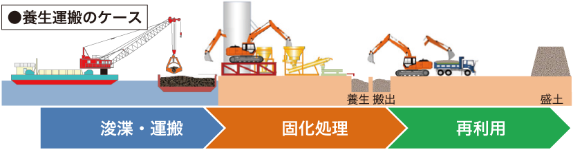 建設工事等で発生する建設汚泥を原位置で改良し現場内で再利用する技術。