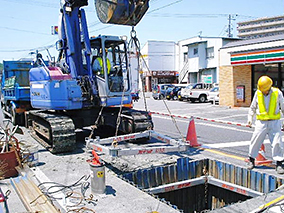 ・気温が0℃(氷点)以下で施工の場合でも、水圧シリンダー内・水圧ポンプ内の水の凍結防止対策として不凍液を混入して、施工可能。強風、強雨、豪雪の時は施工できない。