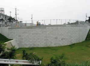 もたれ式プレキャスト擁壁ブロック(大型積みブロック ホライズン)。