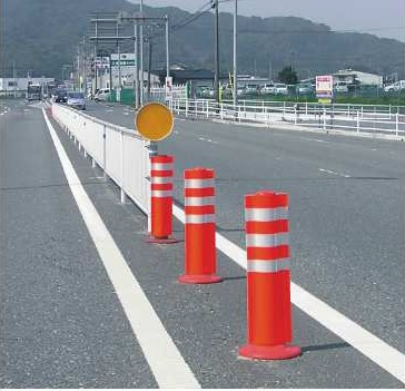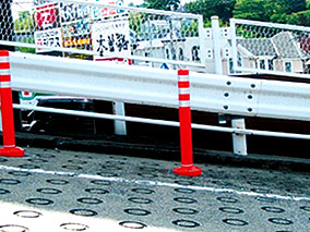 既設本体の更新から既設本体に被せて固定シートで貼り付けるポール式視線誘導標用カバーに変えた。