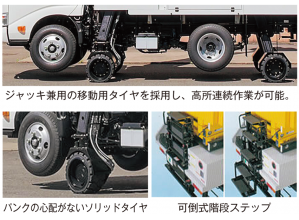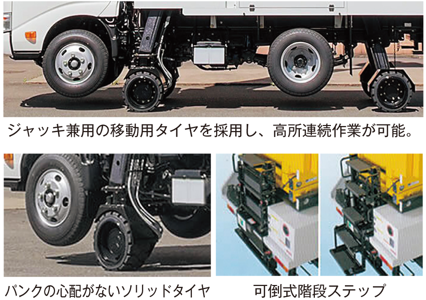 ・作業姿勢のまま車両の移動を可能としたことで、作業時間の短縮が図れ、経済性が向上する