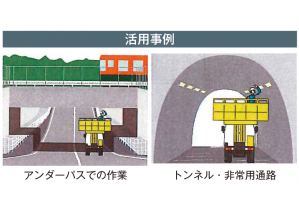 ・高所作業車の作業床の操作装置で作業員自らの操作により、作業姿勢状態のまま移動することができることから、時間短縮が可能となった。