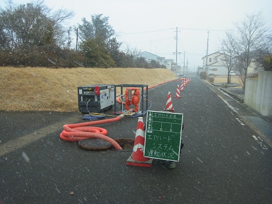 1.従来の水替工は水中ポンプを使用していたが、最大通過固形物φ9.5mmからφ25.0mmに改良したエアー式ダイアフラムポンプ(エアハートポンプ)を使用した。