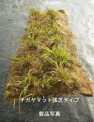 種子を発芽させ、生育良好な苗に育成し、マットに植えつける。根茎がマットに伸長し絡まるまで数ヶ月間圃場にて養生した製品である。