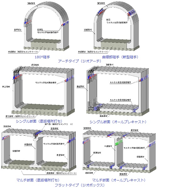 ・継手に既存継手だけでなく鋼材スライド式新型継手を用いることにより、継手をカルバート断面曲線部に配置可能として、工期短縮を図ることができる。