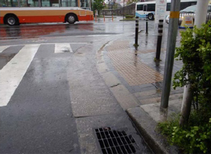 ・歩道切下げ縁石に排水スリットと内部水路を設けた。