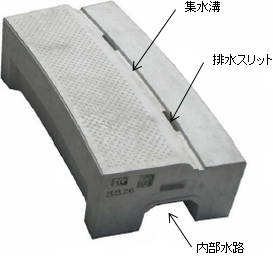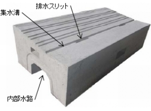 ・長さ方向全長に配した集水溝上に排水スリットを設けた。