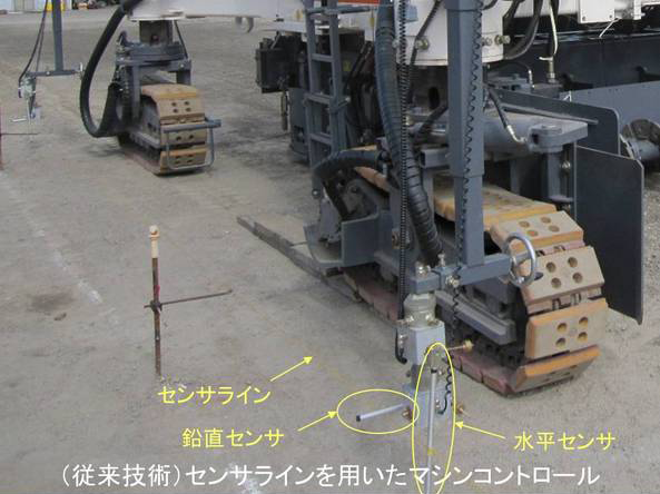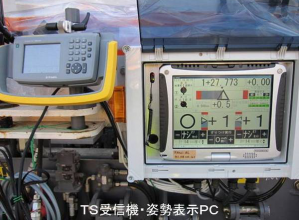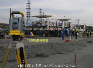 ・舗装機械の高さ及び方向を自動制御するシステムで、センサライン検知からTSを用いた情報化施工に変えた。