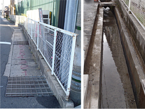 ・A型(Adjustable)は擁壁部に開水路が一体化されているため、ドレーン工に集水された浸透水や雨水以外にも、のり面から流れ落ちる雨水や、道路排水の処理も一緒に行える。