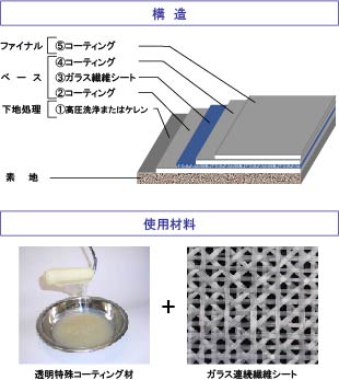 ・コーティング材がプライマーの役割を兼務するため、プライマー工程を必要としない。
