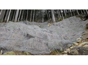 ・G-specに使用する浸食防止マットは吸出防止効果を持ち、湧水等の流下水による土砂の流亡で新たな落石が発生することを防ぐことができる。