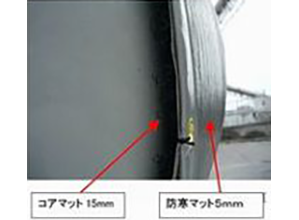 ・アジテーター車のドラムをカバーで覆うことにより、運搬中のコンクリートを保温する技術。カバーは、発泡ポリエチレンシートと空隙をもたせるためのコアマットの2重構造です。