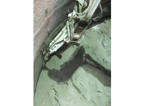 ・トンネル切羽で使用されるバックホウ(ブレーカー付き)の先端に取り付けることで、手作業では困難な平滑化を重機の操作で行うことができる。