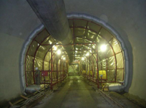 ・トンネル工(NATM)で鋼製支保工を使用する現場。鋼製支保工を使用しない吹付け面の平滑化には、別途、定規枠等の設置が必要。