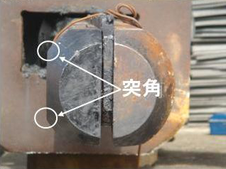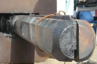 ・ 従来は、大型ブレーカ(1,300kg級打撃力2,405KN(245t))のチゼルの打撃により、岩盤を破砕していたのに対して、油圧の力で初期の段階に2方向に引裂くことにより、割る方向を確定でき、構造物等の影響範囲への制御が可能となった。12700tの割岩力が発生し割岩の後半に自由面に面した、2つの突角で破砕する為岩盤が3分割又は6分割され、小割も減少し低振動・低騒音の工法である。