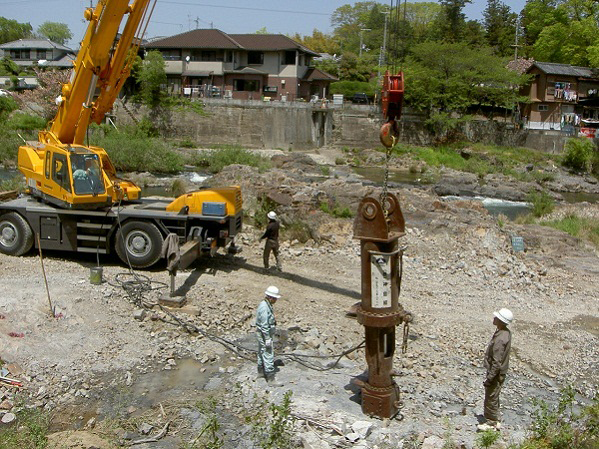 ・本工法の割岩時は油圧力により引き裂く方式のため、低騒音・低振動で、粉塵も少い。