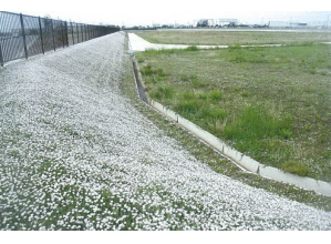 ・道路路側帯等の雑草抑制効果により、景観および視界悪化を防止すると共に、害虫の繁殖も低減できる。