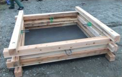 ・据付場所に直接木製型枠ユニット(2次製品)を設置し、直接コンクリートの打設をするのでブロック製作ヤードが不要。