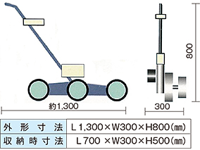 ・想定平坦舗装路面測定機構が不要なので、わだち部やカーブ部でも測線を忠実に押して測ることができ、施工精度が向上する