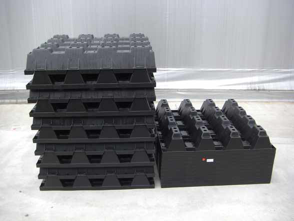 従来技術で路盤材として用いられている山砂を再生プラスチックのブロック形状(プラロード)に変えた。