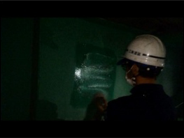 ・湿潤化して行う素地調整を、塩素系塗膜剥離剤により塗膜剥離した後,動力工具等により仕上げ素地調整を行う工法から、塗膜粉じん飛散防止液を塗付して行う動力工具等による素地調整工法に変えた。
