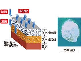 ・舗装表面を粗面型としたことにより、ポーラスアスファルト舗装と同等のきめ深さが確保でき、雨天時の路面水膜発生抑制性能が発揮される。