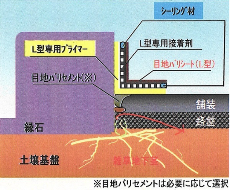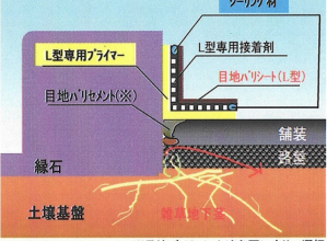 ・L型目地から発生する雑草対策を人力除草による除草工から、シート・目地材による除草工に改善した。
