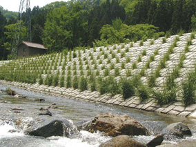 ・切土などの法面際での作業(型枠の組みばらし工程や掘削面とブロック間の狭い空間での作業が少ないなど)を短時間で済ますことにより、法面崩落事故等にあう危険性を少なくできるメリットがある。(労働災害にあう可能性が少なくなる)