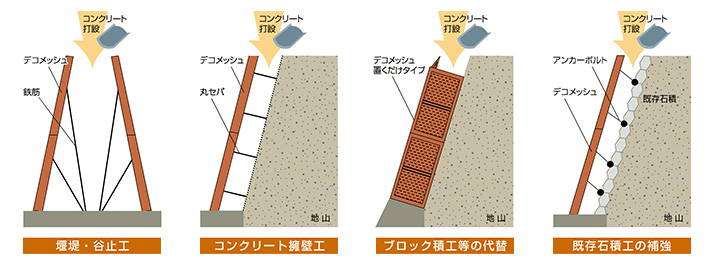 ・人力施工が容易なため、人が作業できるスペースがあれば他に制限なし。