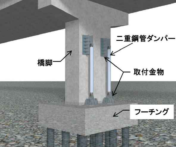 ・二重鋼管ダンパー(橋脚ダンパー)を用いることで、基礎増設が不要になるケースが生じる。