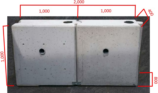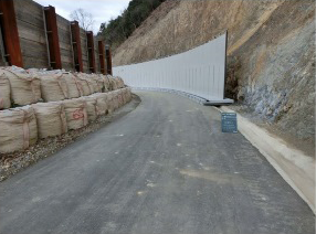 ・仮設防護柵の基礎部に、工場製作の付帯設備(横断防止柵、溝蓋、側溝、縁石)設置用の溝が形成されているPC版及び擁壁型のPC基礎を使用することで、不陸整正作業だけで基礎部の設置が可能となり、防護柵基礎工の工程短縮と防護柵撤去後は舗装復旧工がなくなる。また付帯設備である横断防止柵や縁石を設置する事で歩道、もしくは安全通路も同時に設置できる。